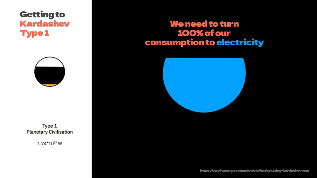 So with that in mind, back to where we are right now on our journey to being a Kardashev Type-1 civilisation.