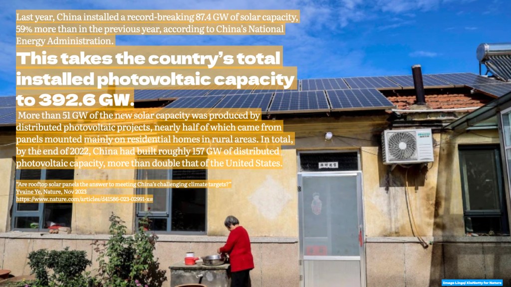 Here is a report from Nature at the end of last year showcasing China’s push into rural residential rooftop solar.