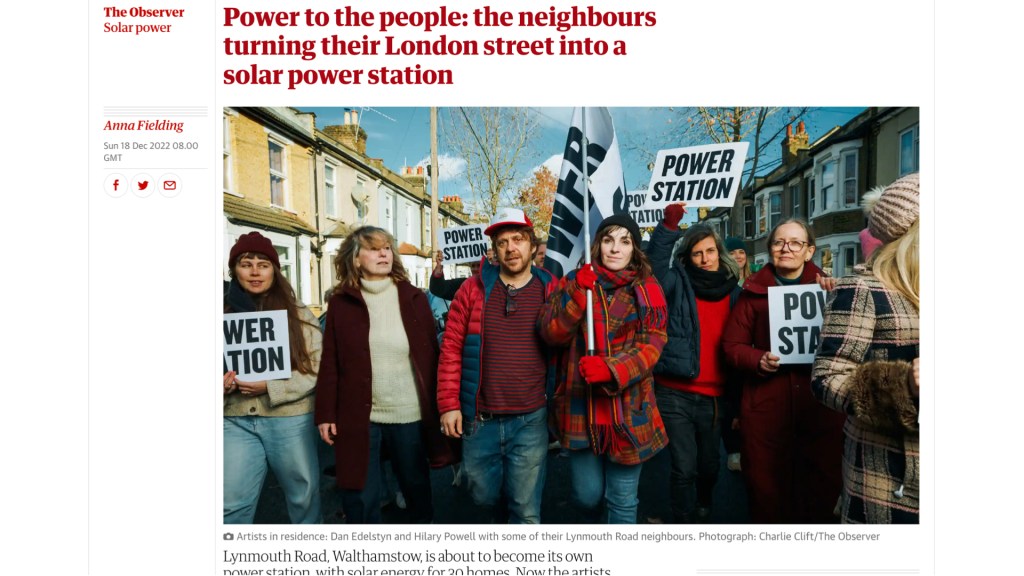 Pictured here is perhaps a prototype of just that – Lynmouth Road in NE London where the residents are campaigning to become their own power station…