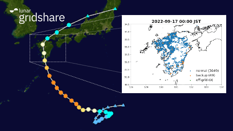 And here is an example I think is really powerful: a 2022 typhoon warning in Japan where we have a large fleet of batteries controlled by the Gridshare platform.